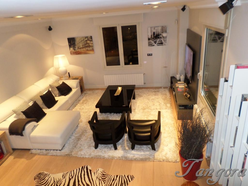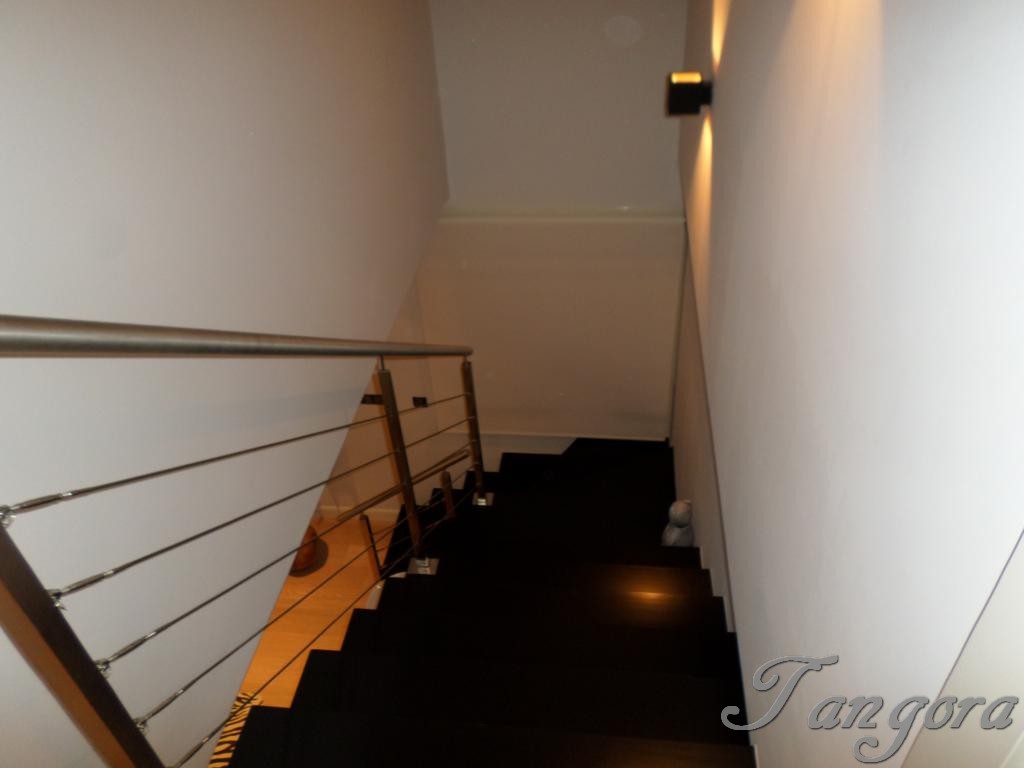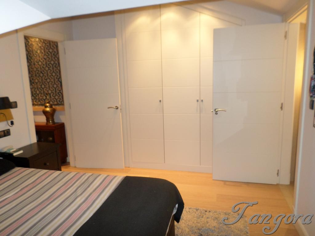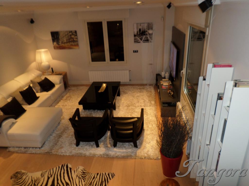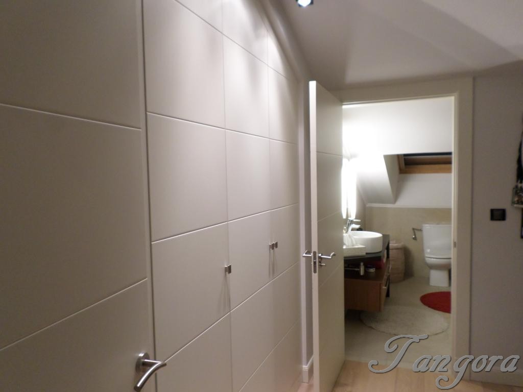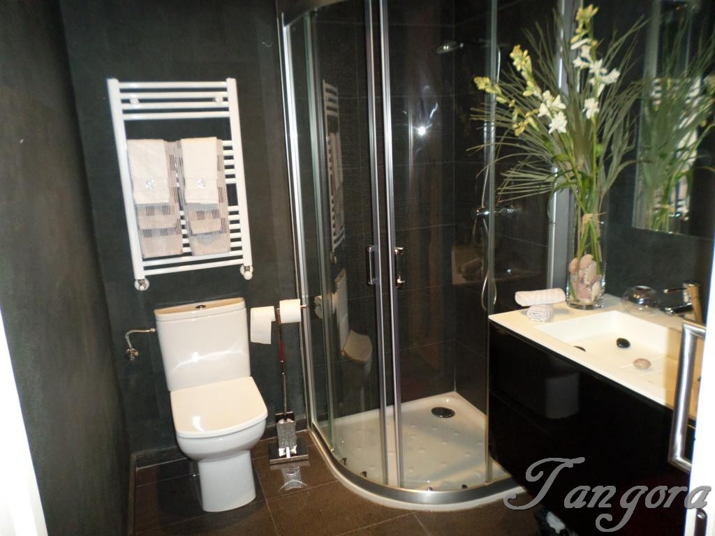 Subiendo una preciosa escalera llegamos al piso superior en el que nos encontramos dos magníficas suites; la habitación principal es un espaciosísimo cuarto abuhardillado que cuenta con un gran vestidor y un fabuloso cuarto de baño, en blanco y negro, amplio, elegante y en que se ha instalado una magnífica ducha de hidromasaje. La otra habitación, también abuhardillada, tiene una acogedora zona de estar, y su propio cuarto de baño, éste en mármol beige y con una luz espectacular gracias a un bonito tragaluz.